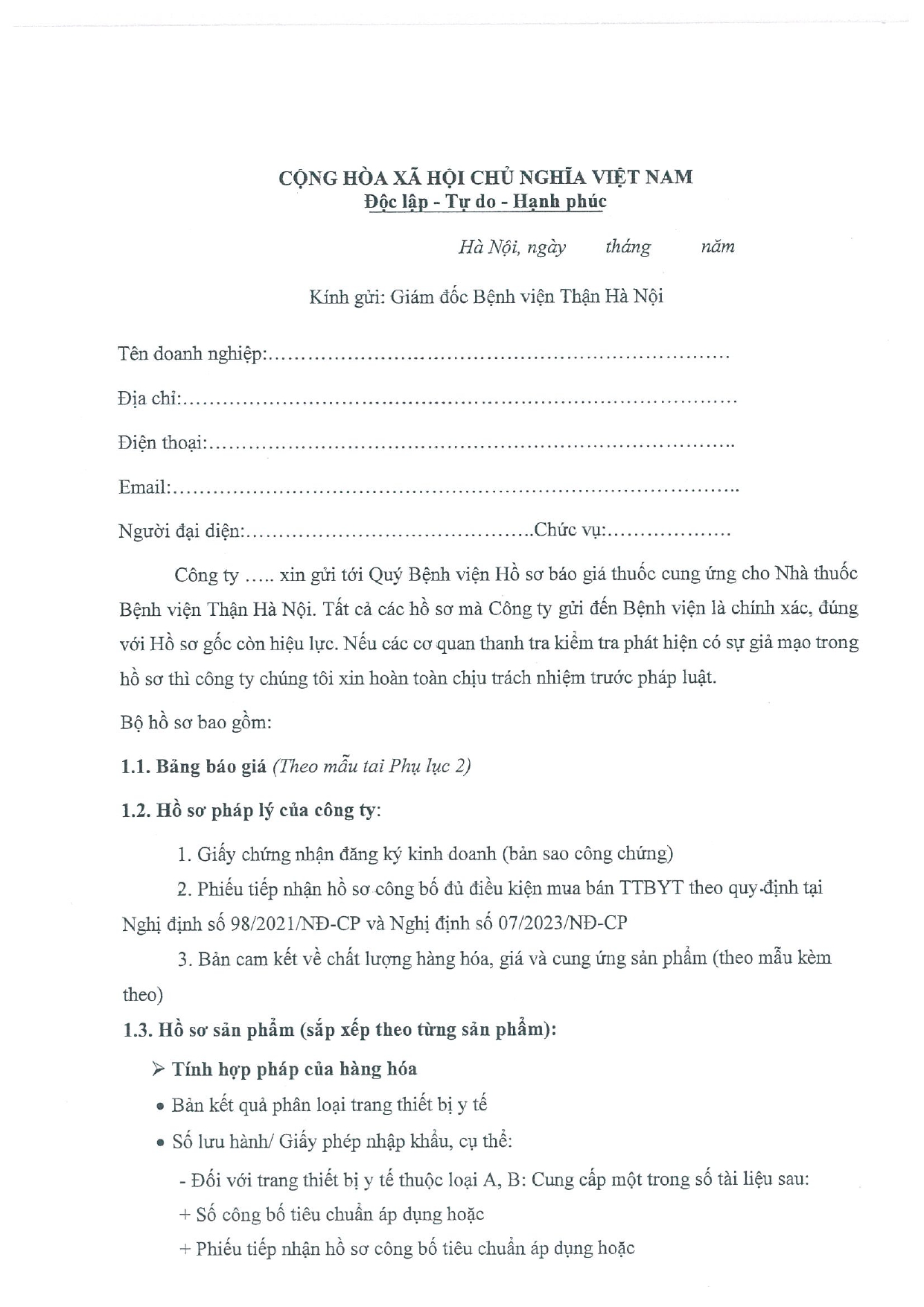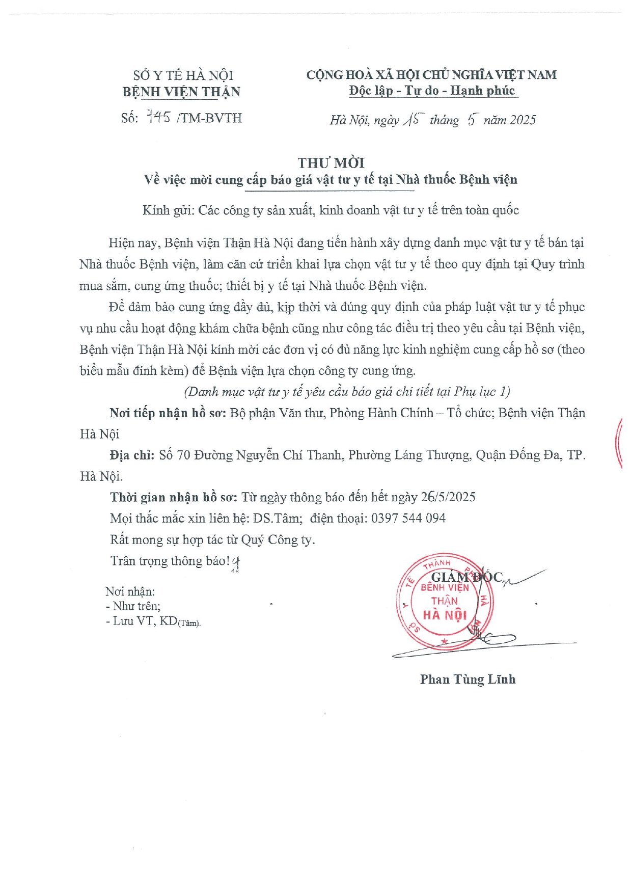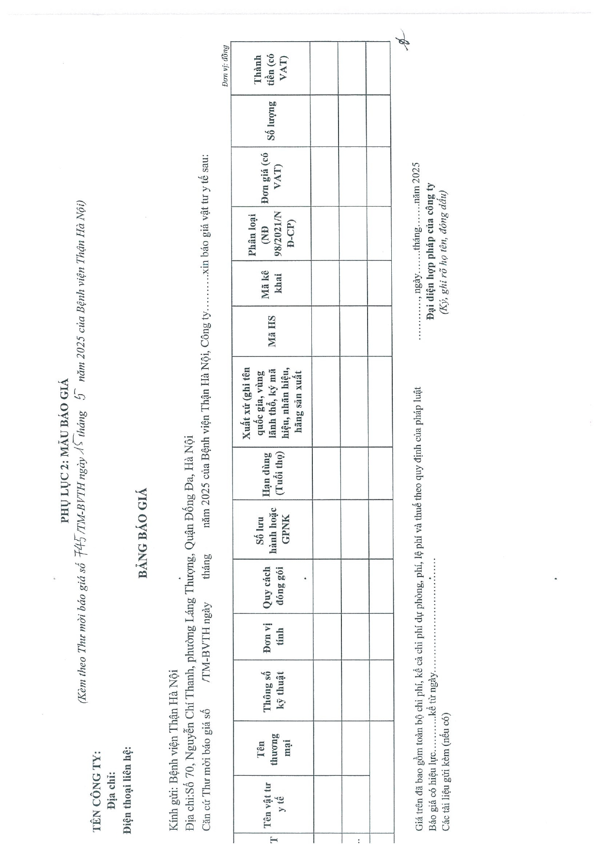 THƯ MỜI BÁO GIÁ