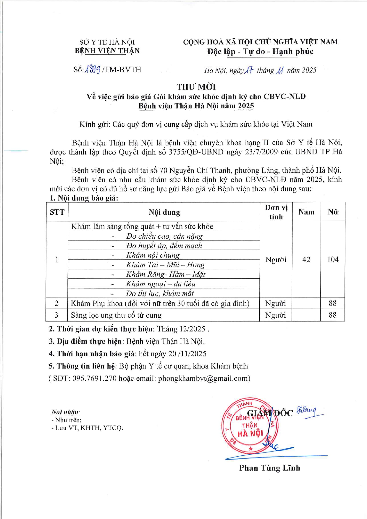 THƯ MỜI BÁO GIÁ
