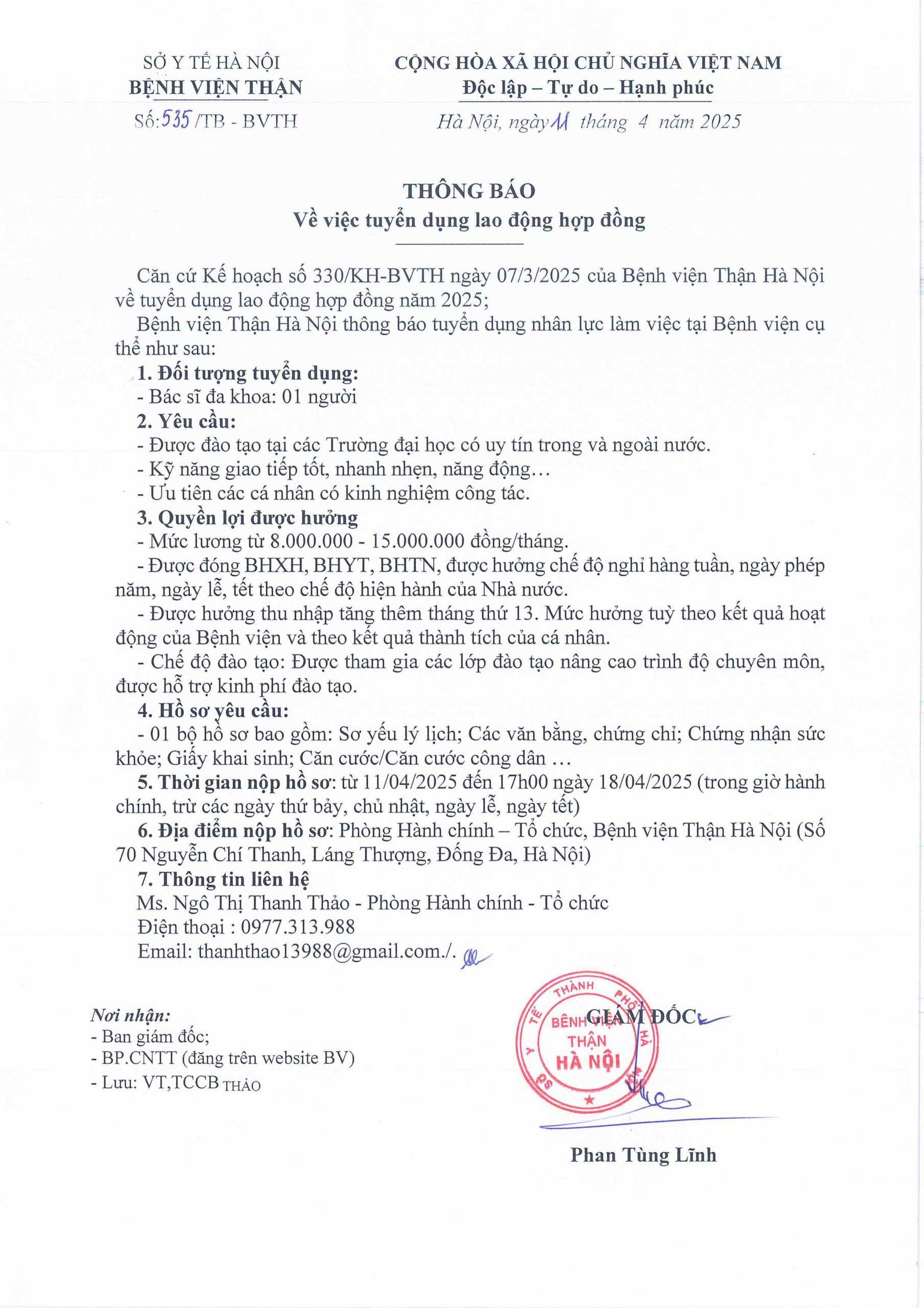 THÔNG BÁO TUYỂN DỤNG