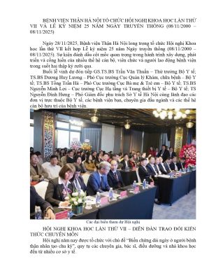 BỆNH VIỆN THẬN HÀ NỘI TỔ CHỨC HỘI NGHỊ KHOA HỌC LẦN THỨ VII VÀ LỄ KỶ NIỆM 25 NĂM NGÀY TRUYỀN THỐNG (08/11/2000 – 08/11/2025)