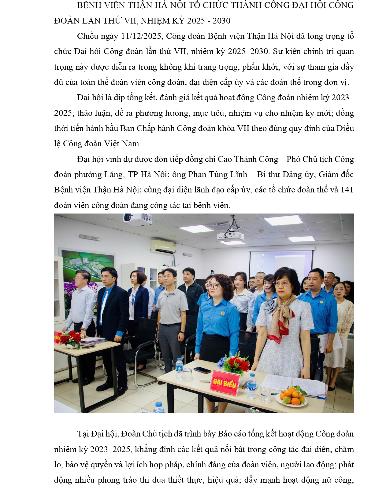BỆNH VIỆN THẬN HÀ NỘI TỔ CHỨC THÀNH CÔNG ĐẠI HỘI CÔNG ĐOÀN LẦN THỨ VII, NHIỆM KỲ 2025 – 2030