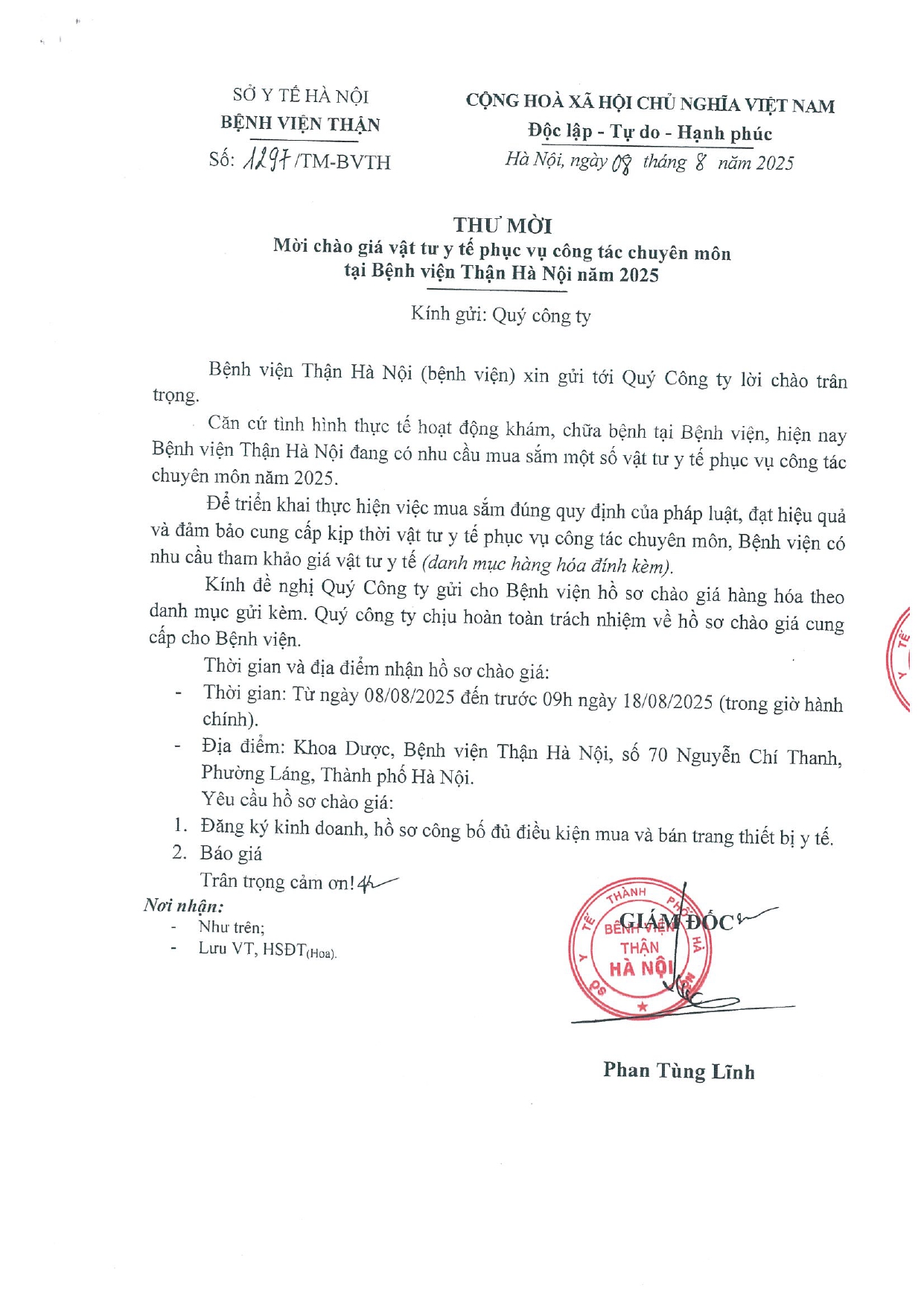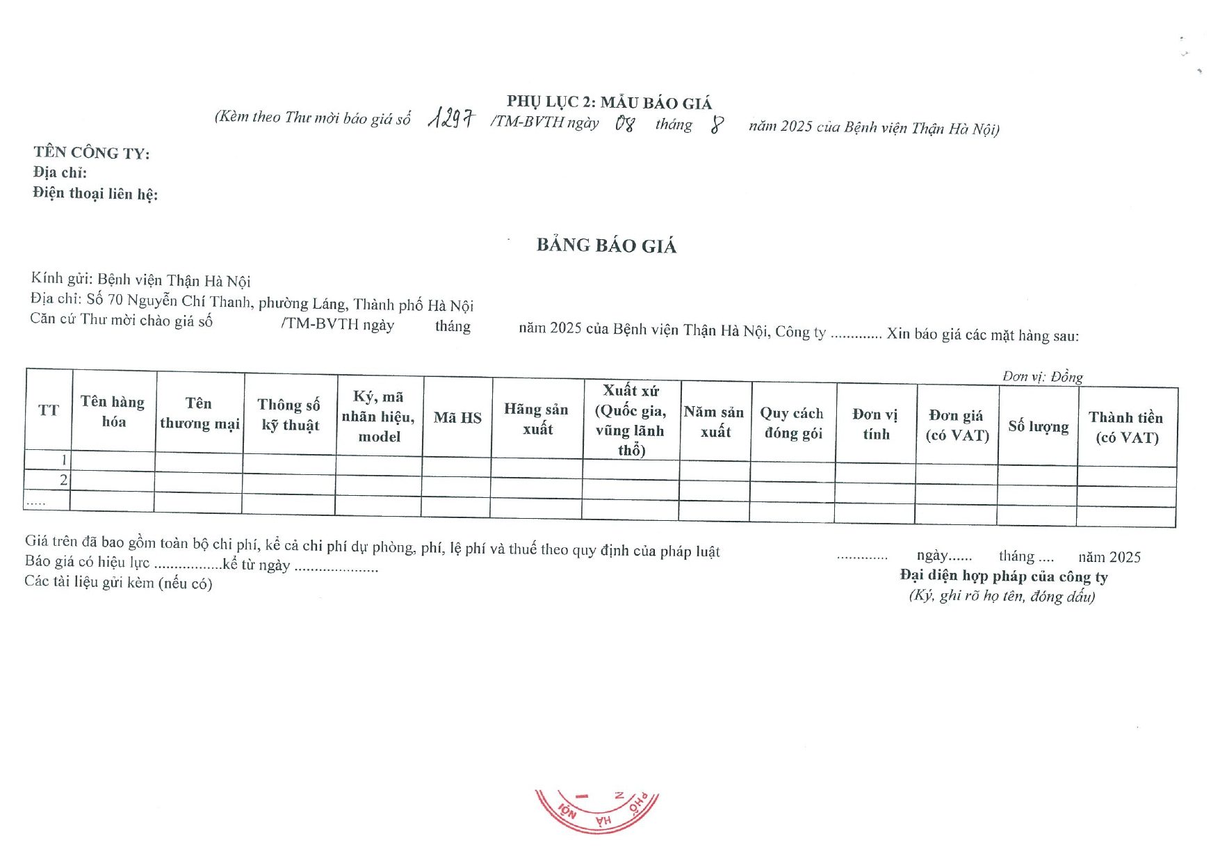 THƯ MỜI BÁO GIÁ